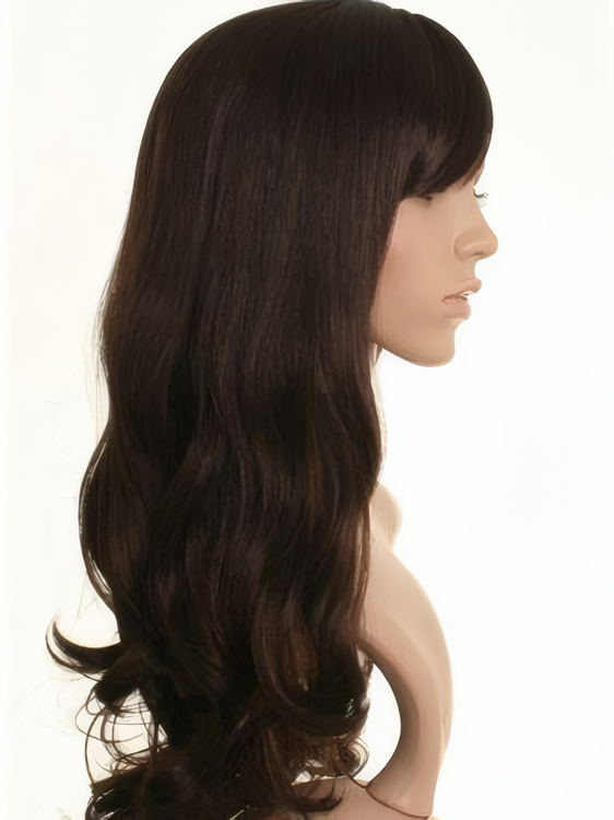 This luxurious long dark chestnut brown wig was created exclusively for us with inspiration taken from Kate Middleton's stunning long brown glossy hair. It is a full volume style wig, with a wavy effect, a side parting and long side fringe and lots of stunning glosdsy layers which perfectly mimics the hairstyle of Kate Middleton.