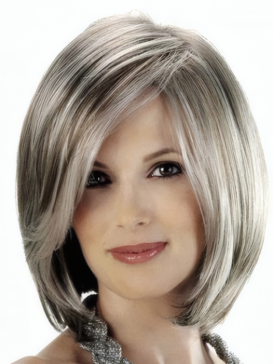 Angled Sides Capless Synthetic Gray Wig