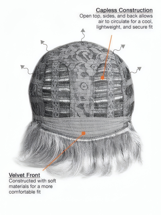 Capless wigs allow your head to stay cooler than solid capped wigs. This is due to the fact that it is made with less hair and the specific capless construction allows for some air flow to the head and scalp.There are also adjustable straps or hooks at the nape of the neck to secure the wig in place.
