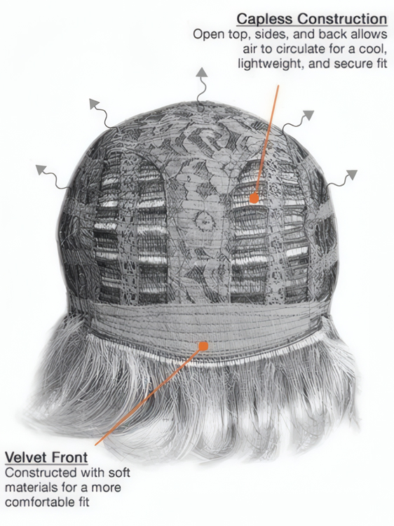 Capless wigs allow your head to stay cooler than solid capped wigs. This is due to the fact that it is made with less hair and the specific capless construction allows for some air flow to the head and scalp. There are also adjustable straps or hooks at the nape of the neck to secure the wig in place.