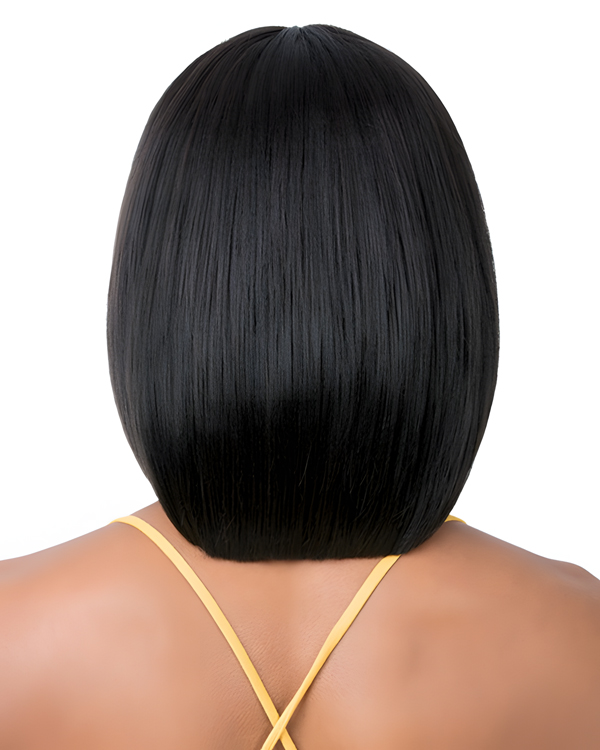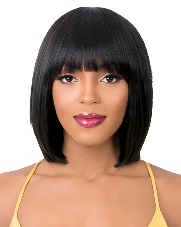 Classic Straight Bob Black Synthetic Wig with Bangs for African American Women
