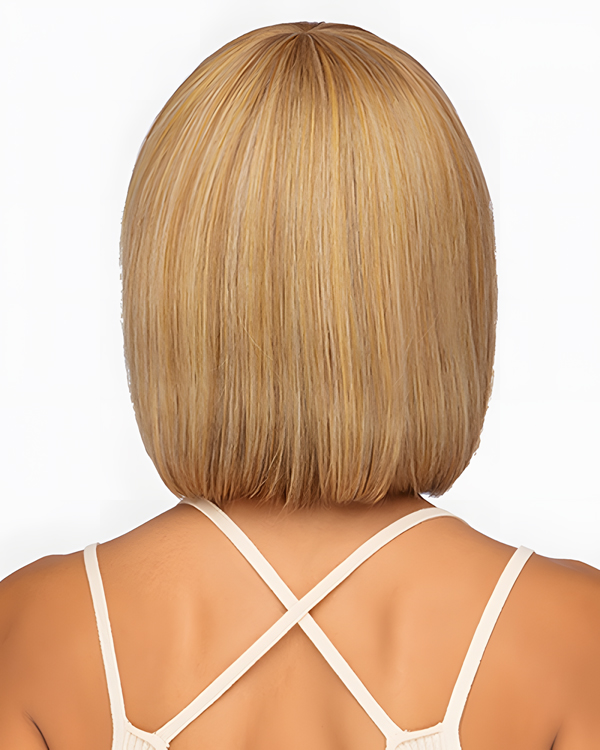 Blonde Straight Bob Wig with Bangs – Chin Length Synthetic Wig for Black Women, Natural Look Full Fringe Wig