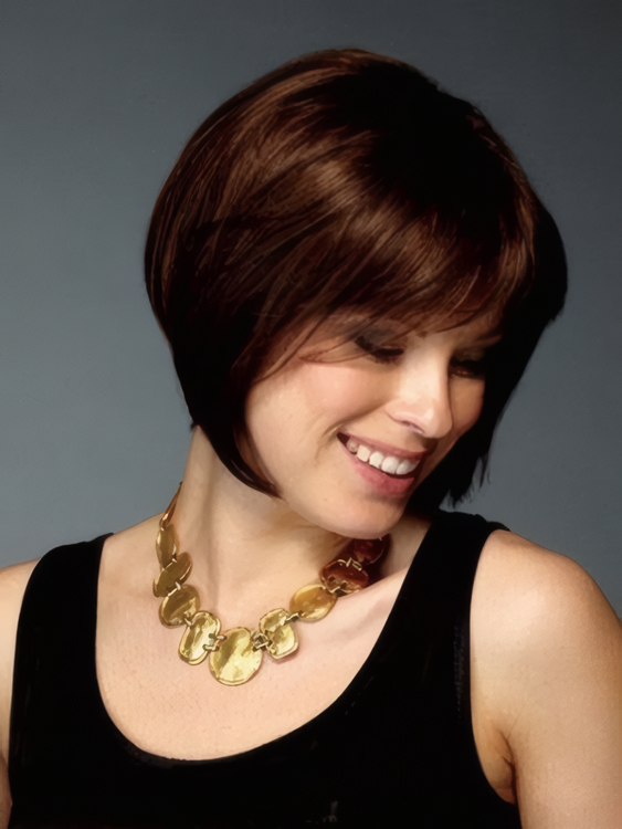 This short sleek straight bob wig featuring a choppy fringe and soft, face-framing layers at the sides. The easy-to-wear style is suitable for both casual and formal wear.The finest Heat Friendly Synthetic Wig material provide a comfortable, feather light feel and a natural look.You can wear the bob wig all day, every day with minimum maintenace required.
