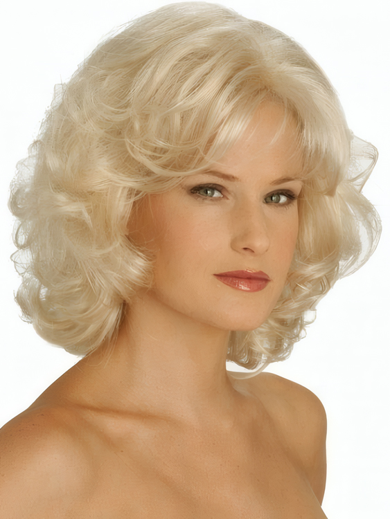 Mid length with natural bottom layered curls, a ravishing appearance.