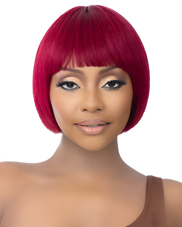 Short Burgundy Bob Wig with Bangs – Sleek Straight Synthetic Wig for Black Women, Heat Resistant