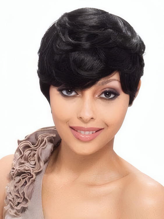 Capless Human Hair Short Wavy Wig