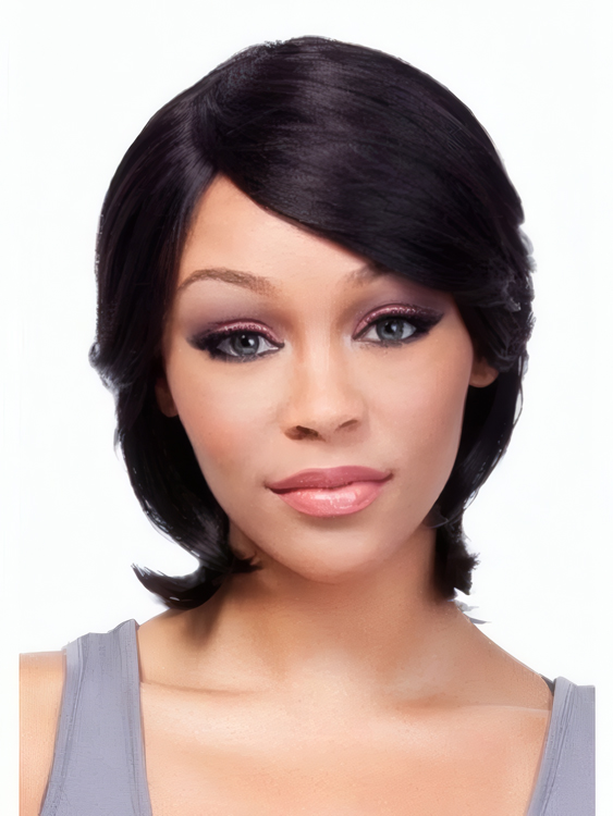 Capless Medium Popular Human Hair African American Wig With Bangs