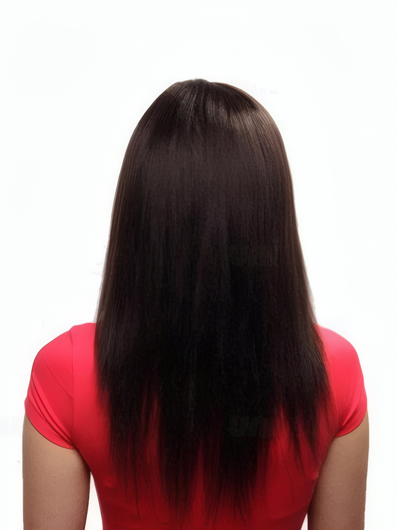 Top quality Indian remy human hair, full lace construction with stretch panel on the top. Single knots around the perimeter, double knots elsewhere, yaki texture to mimic coarse natural hair.