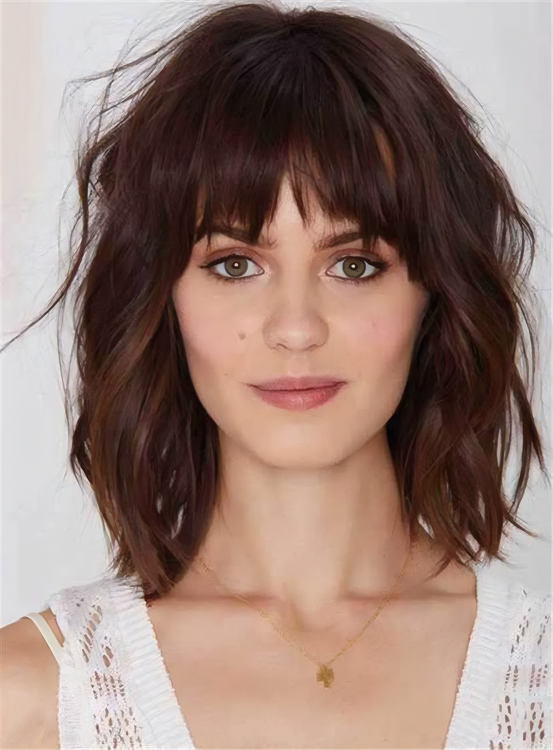 Charming Medium Wavy Capless Synthetic Wig with Bangs