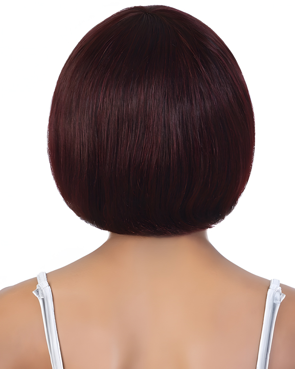 Chic Burgundy Short Bob Synthetic Wig with Full Bangs – Sleek Straight African American Style