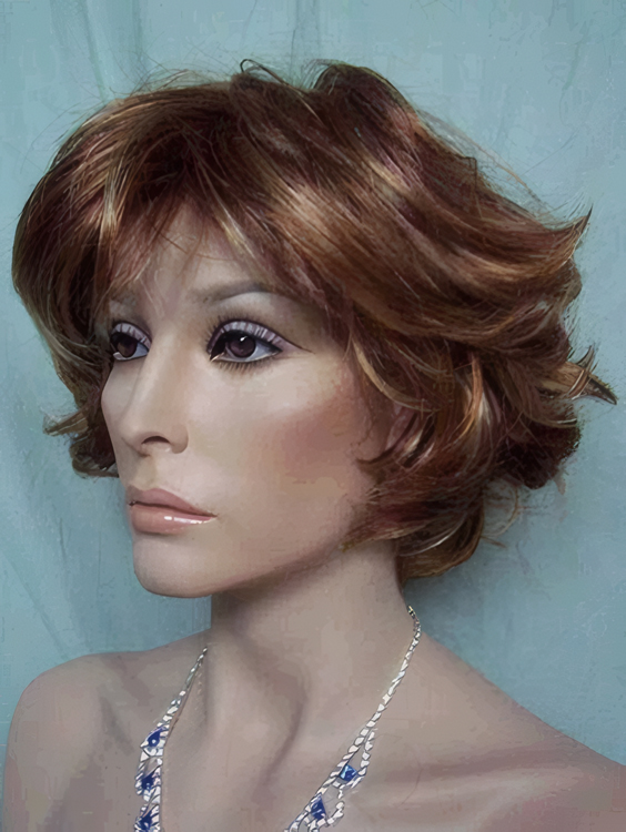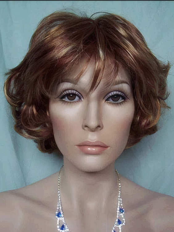 The wig features a wavy, mid-length bob style that offers classic good looks and carefree styling. Features flipped ends with lots of movement and flattering, face-framing bangs.