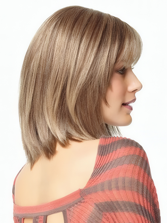 A gently layered, shoulder length page with angled-cut sides that flatteringly frame the face, this fashionable cut includes a hand-knotted part for a natural looking and optional bangs for life-like, off-the-face styling.