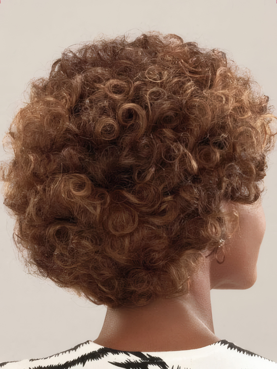 Soft, elegant all-over curls spill effortlessly into a flattering silhouette. Layers of varied curls keep the look lively, moving, flattering.