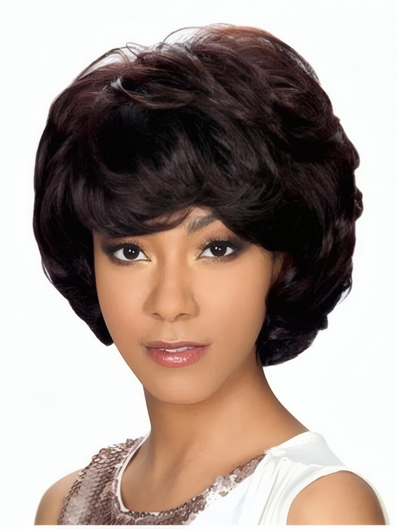 • Made from rows of wefts that have been machine-sewn together into a basic cap. Hence, they are also known as machine-made wigs.