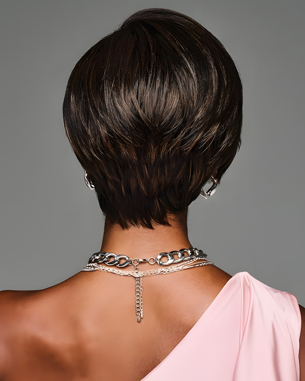 Elegant Short Bob Wig for Black Women – Natural Look Layered Pixie Cut with Side Part | Heat Resistant Synthetic Hair Wig for Daily Wear