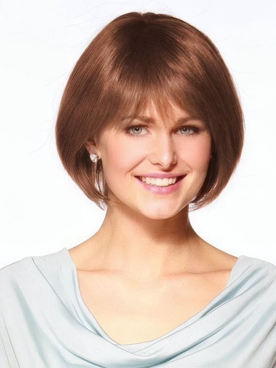 The 100% Remy human hair wig is utterly gorgeous! The fringe measures 4; and will fall below brow level. This then perfectly blends into the side lengths that will fall flattering against your cheeks & neck. The overall length from crown to back tips is 12;. As this is human hair, you can style as you require. Curl for a more bevelled finish, or straighten for a sleek look.