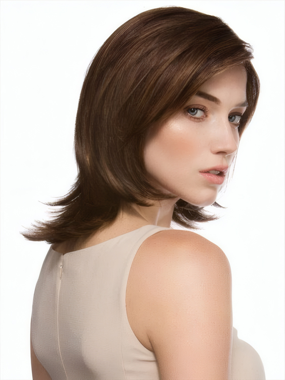 Fashionable Natural Medium Wavy Monofilament Brown Wig