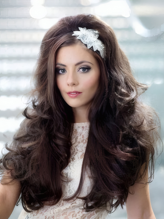 • 3) You can cover the seam of the 3/4 wig with a headband or you can style your own hair over the seam with or without a fringe.