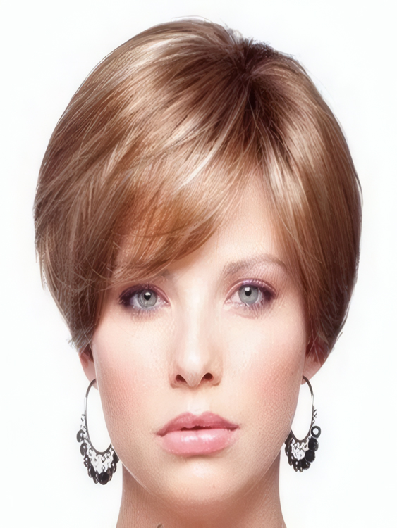 Full Lace Natural Short Straight Human Hair Wig is precut and trimmed to be customized to your personal needs and can be worn instantly. The fashion forward look is an irresistibly feminine design with soft layers.