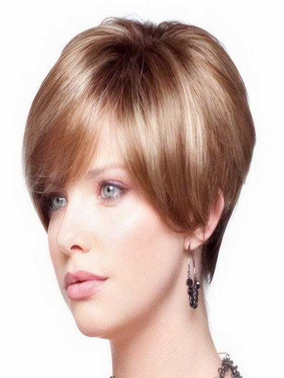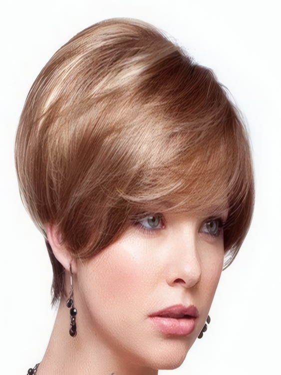 Full Lace Natural Short Straight Human Hair Wig is precut and trimmed to be customized to your personal needs and can be worn instantly. The fashion forward look is an irresistibly feminine design with soft layers.