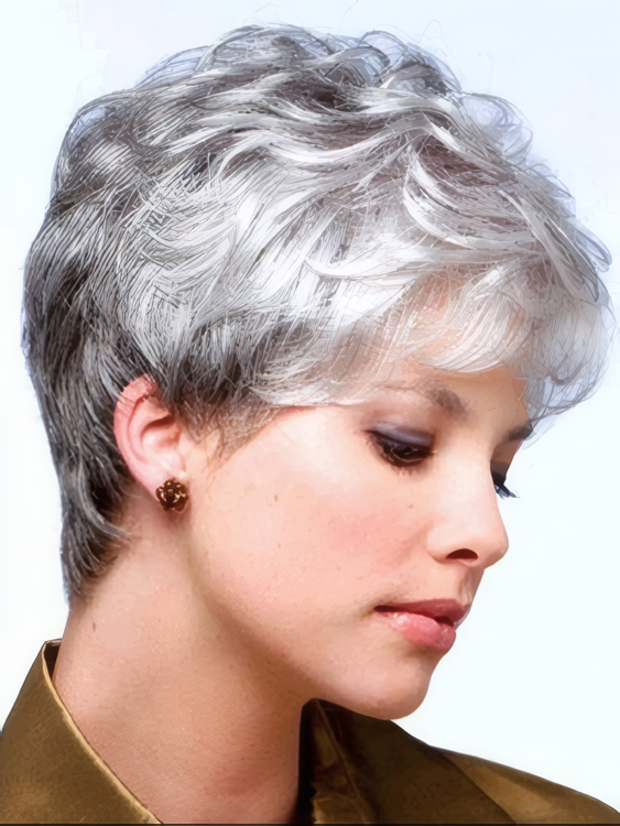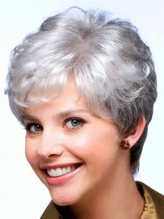 Advanced Heat Friendly Synthetic Wig material with slight natural wavy hairstyle. The slight wavy fringe bangs frame the face well,the grey colour makes you so outstanding and different.