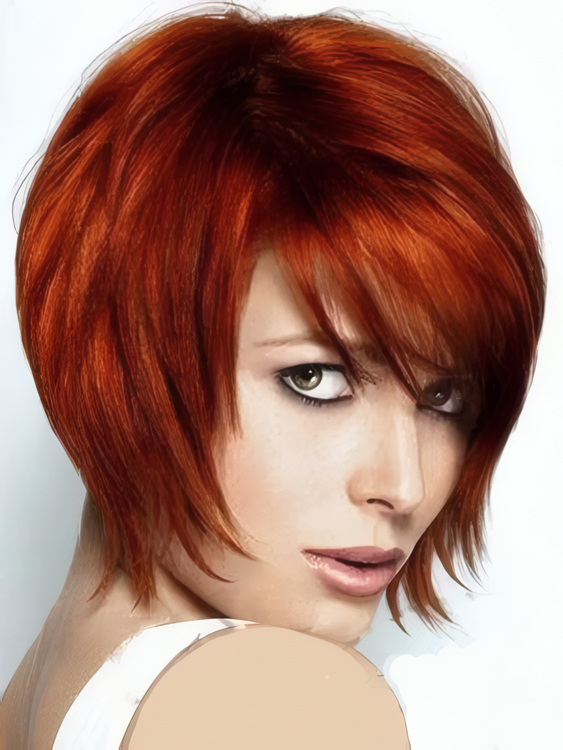 Beautiful hair! I love the style, length and texture! Great for my Black Widow costume. Not as bright a red as in photo, but will be perfect anyway. Thanks!