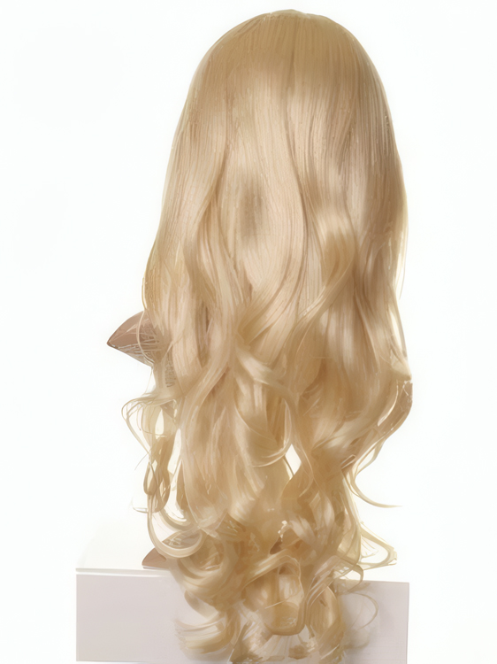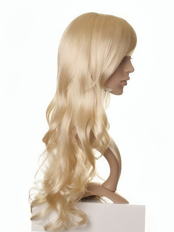 Long Blonde Wavy Celebrity Wig With Wide Fringe