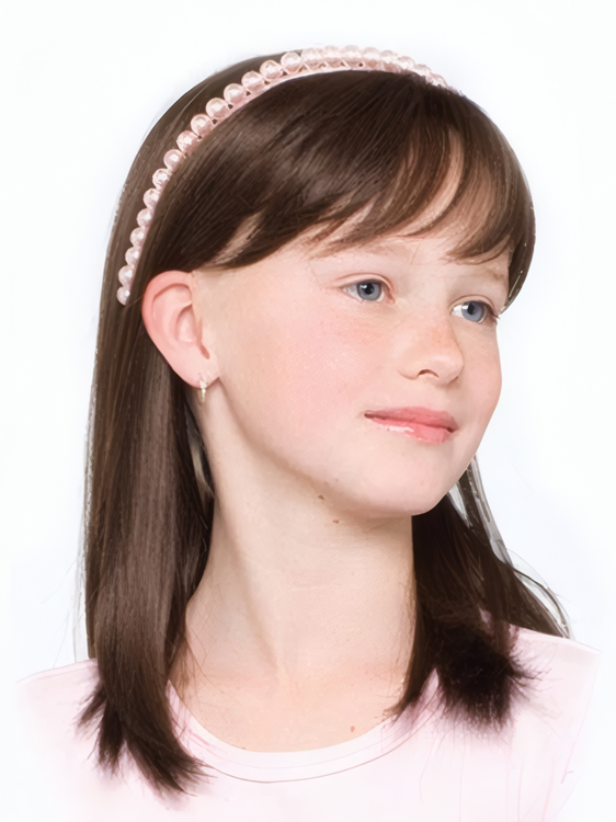 This long straight children's wig with face framing fringe bangs feature base layer at the crown gives the illusion of hair growing from the scalp for a more natural looking appearance.The Full Lace design provides plenty of ventilation, a comfy fit and a truly natural appearance. It Can also be fitted on to ultra-petite heads.