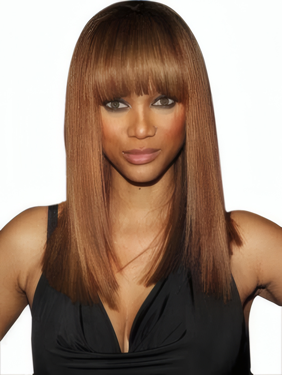 This Long Straight Synthetic Lace Front Wig with Bangs is very comfortable and convenient. This wig can look perfect for any type of face and it can also minimize your high forehead by accenting your eyes. This type of hairstyle can also add glamour as well as flair to your hair.
