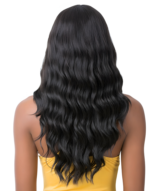 Long Wavy Synthetic Wig with Full Bangs – Natural Black Heat-Resistant Hair for Women