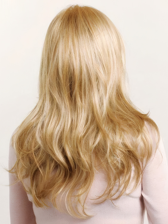 It is a long wavy wig with layering and side swept bangs. Natural movement and excellent ventilation define this long Heat Friendly Synthetic Wig lace wig.