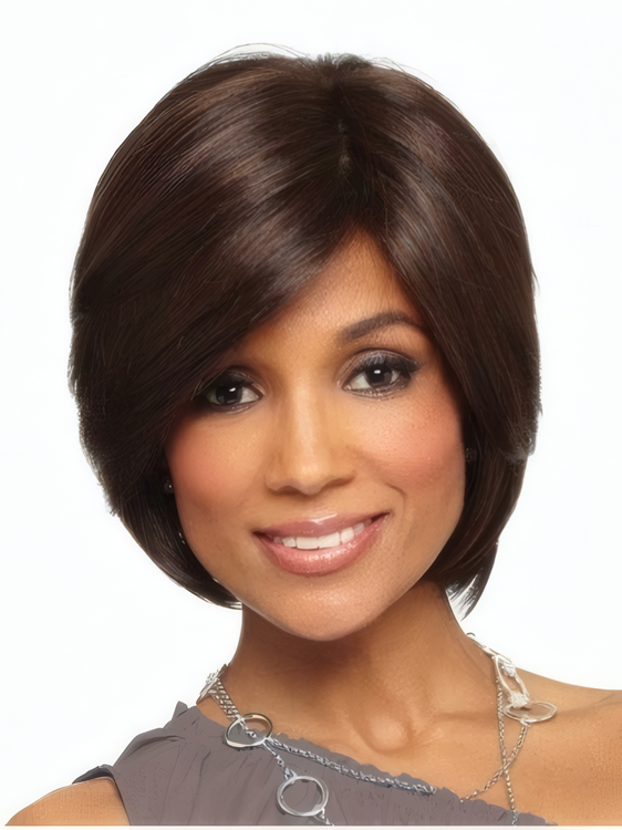 Synthetic wig is less expensive than human hair and is durable. Traditional curling irons, blow dryers and hot rollers CANNOT be used on synthetic hair fiber.