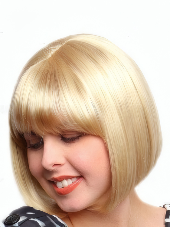 This wig is a sophisticated bob style. The cut is very modern and cut short at the nape of the neck while tapering down to points in the front. The fullness is supported by a durable, traditional cap construction and is easy to maintain.