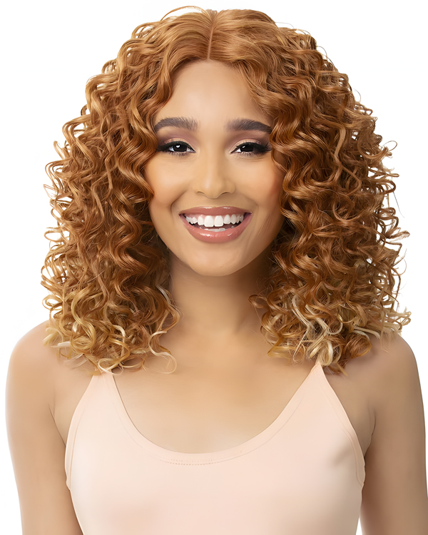 Medium-Length Curly Wig for Women – Auburn Ombre with Blonde Tips, Natural Heat Resistant Synthetic Hair
