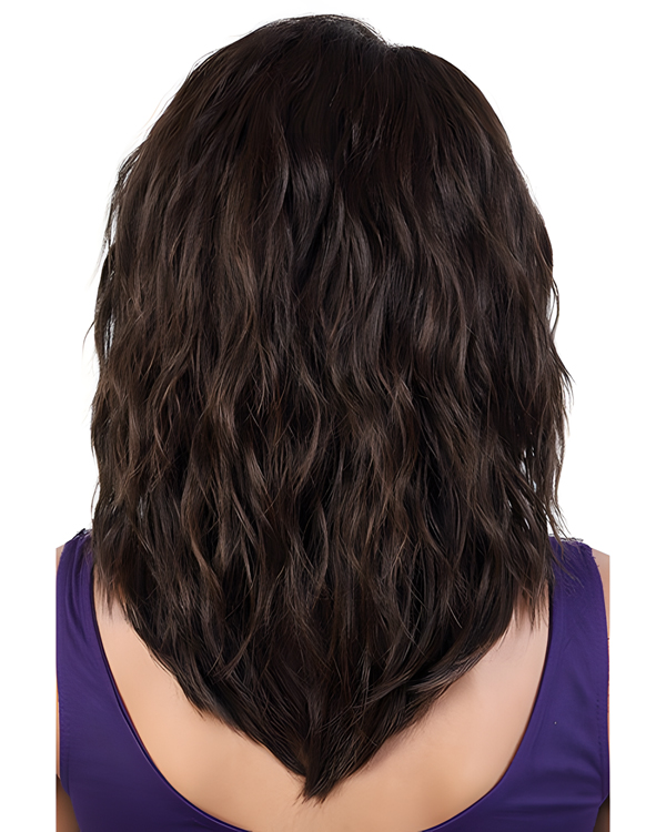 Medium Length Wavy Wig for Black Women – Natural Black Shoulder-Length Synthetic Hair