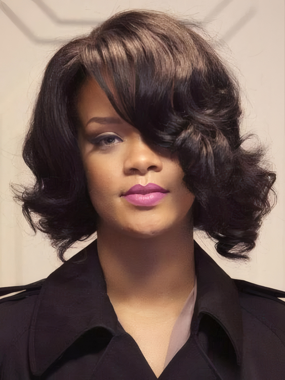 Rihanna celebrity wigs..... a stunning shoulder length, lightly layered 100% human hair wig with lace front cap construction for the look of natural hair growth.