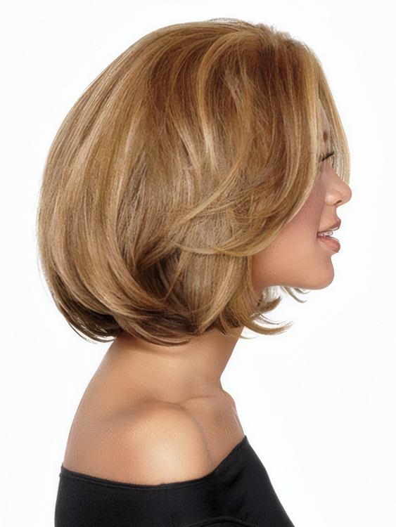 Wearing this bob style Heat Friendly Synthetic Wig can transform your apperance and lets you show a bit of attitude. It features chic and versatile soft layered style with wavy, smooth fringe that accentuates your face.