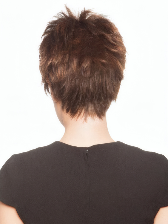 This wig is a short, spiky style. It features razor-finished layers for vibrant texture and easy styling. Just spike it up and go! It can also be smoothed down with styling product for a sleeker look. The layers are longer on the top and shorter towards the neckline, which is tapered. This is a style with a lot of flair and versatility.