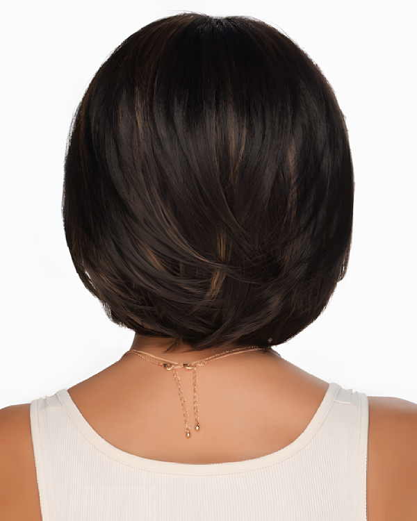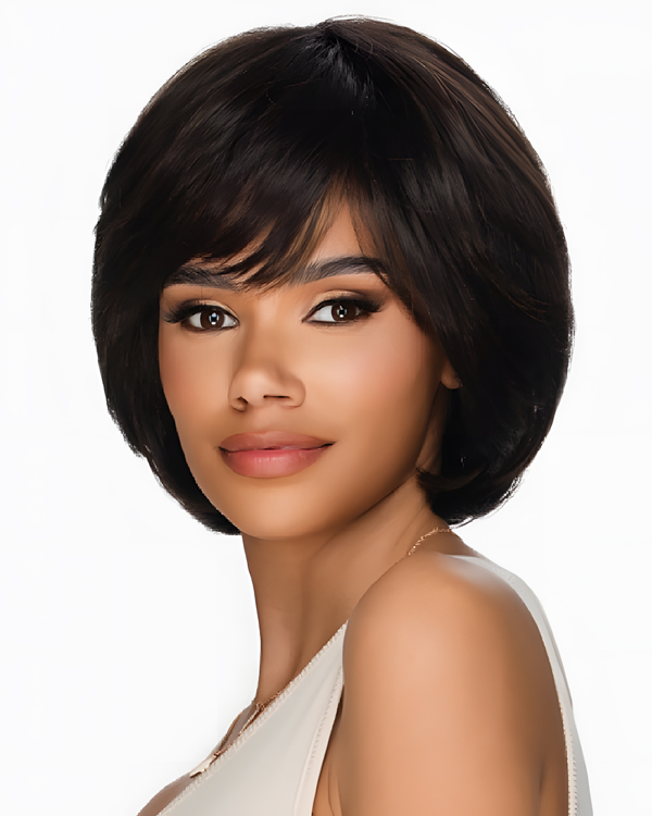 Short Natural Layered Bob Wig with Side Bangs – Soft Synthetic Wig for Black Women
