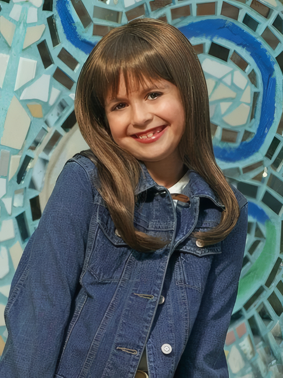This is a classic, long length wig with bangs, a line of wigs specially designed for children, teens, and ultra-petite women.
