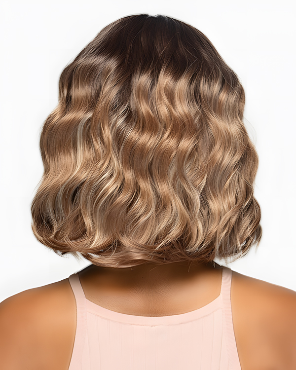 Ombre Brown Wavy Bob Wig with Full Bangs – Short Synthetic Wig for Black Women