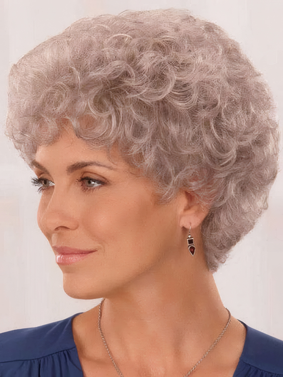 The wig is made with Heat Friendly Synthetic fiber that looks, feels like real hair. Short, wavy wig with charming face-framing bangs.