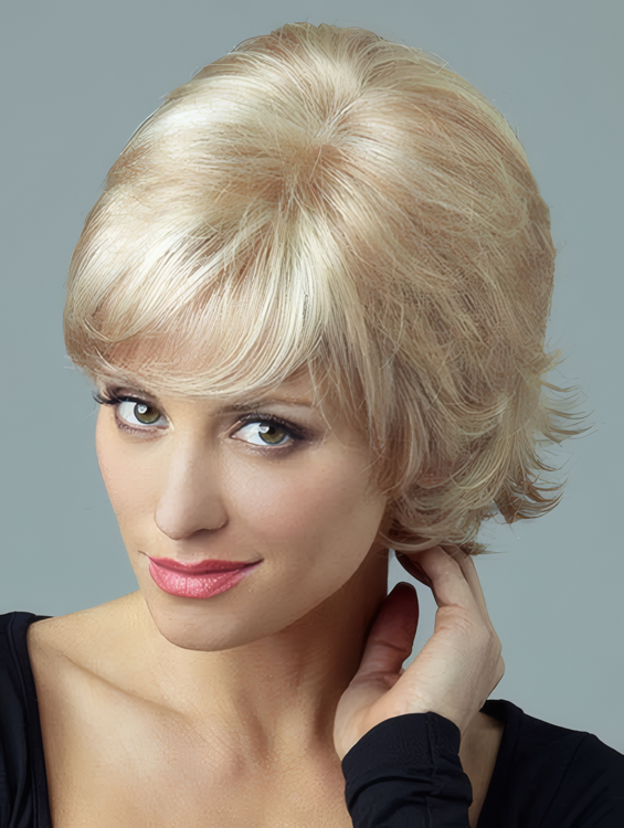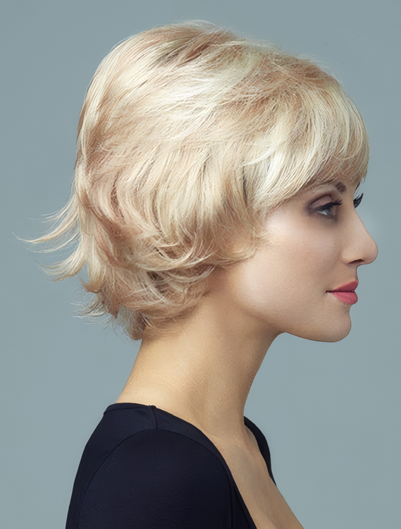This short wig has the added plus of being made with heat friendly synthetic! The open-wefting in the crown, back, and sides allows for maximum ventilation. This makes the cap lighter weight and cooler than a standard cap.