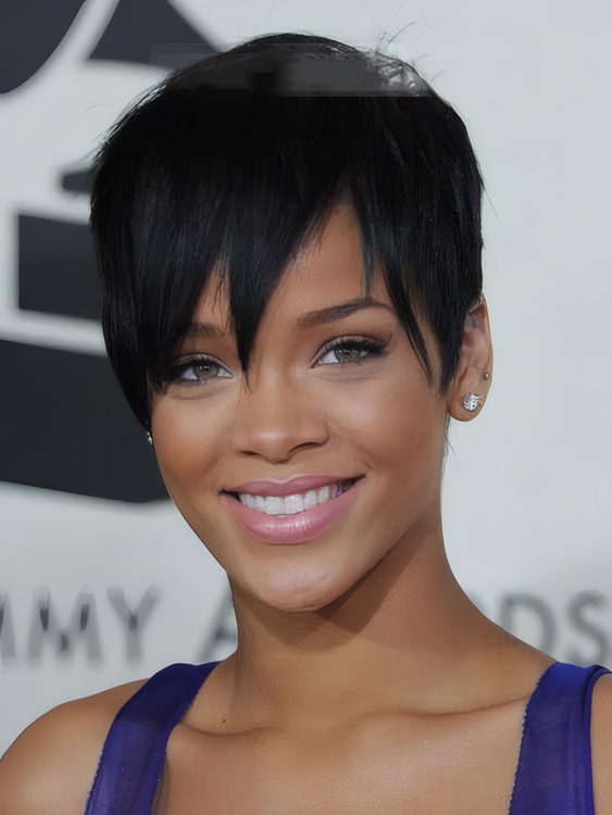 Rihanna celebrity wigs.....This expertly layered boy cut with added length at the top can be finger styled for a spikey look, or smoothed down to a more tailored look. It features a Personal Fit cap construction with velvet ear tabs,providing a custom and comfortable fit. A style that suits most face shapes beautifully.