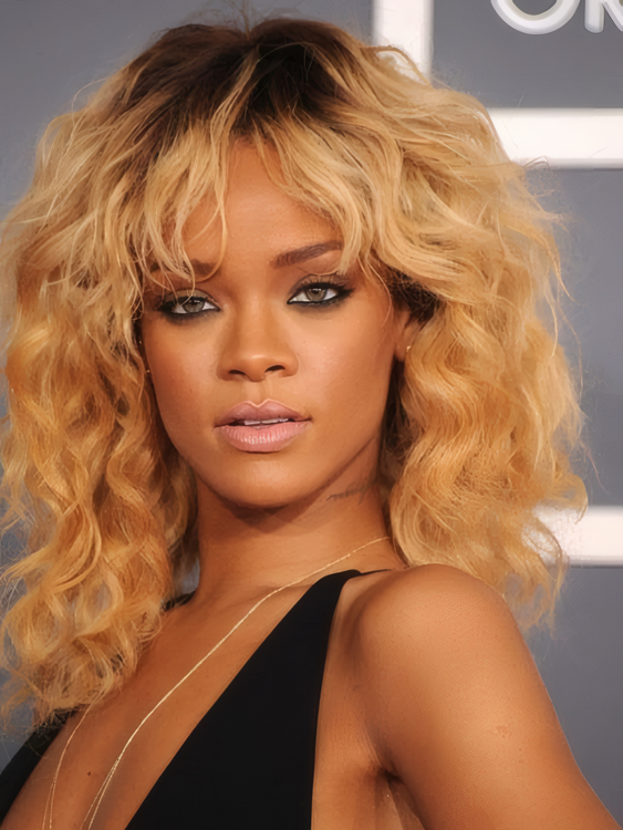 Rihanna Hairstyle Ringlet Wavy Soft Fringe Celebrity Wig
