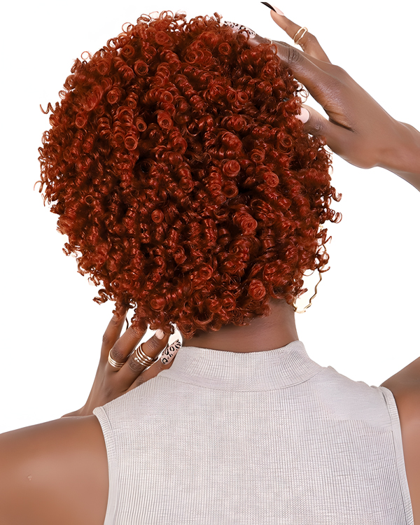 Short Afro Curly Synthetic Wig – Heat-Resistant Tight Coils in Copper Red for Black Women