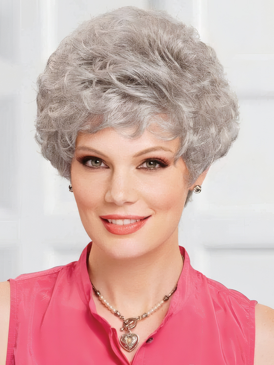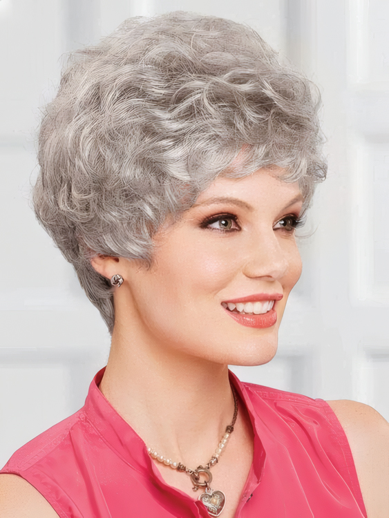 The wig is made with Heat Friendly Synthetic fiber that looks, feels like real hair. Short, curly layered wig with lots of beautiful body.