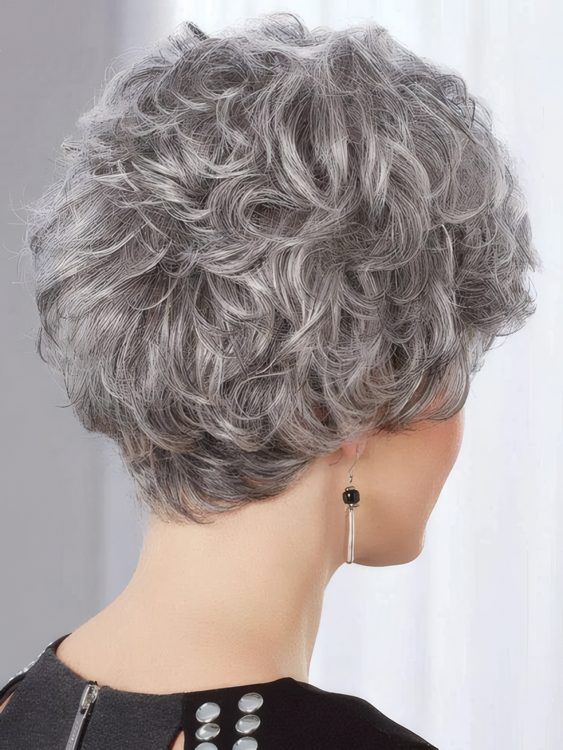 Short Crop Style Gray Wig With Beautifully Layered Curls