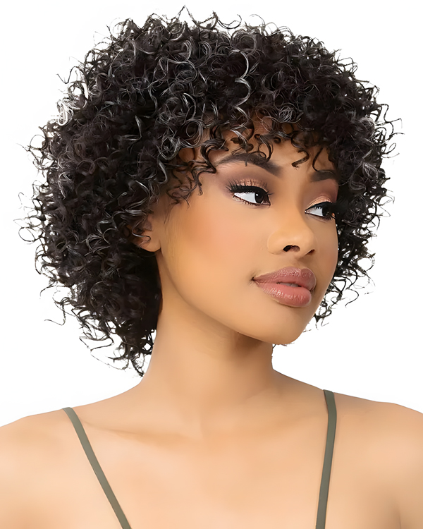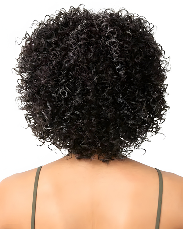 Short Curly Afro Wig with Gray Highlights – Fluffy Synthetic Capless Wig for Black Women