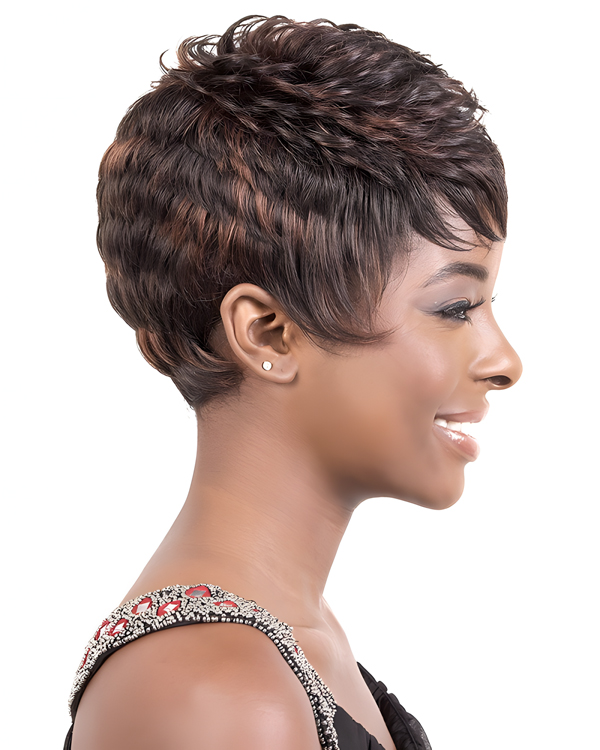 • Made from rows of wefts that have been machine-sewn together into a basic cap. Hence, they are also known as machine-made wigs.